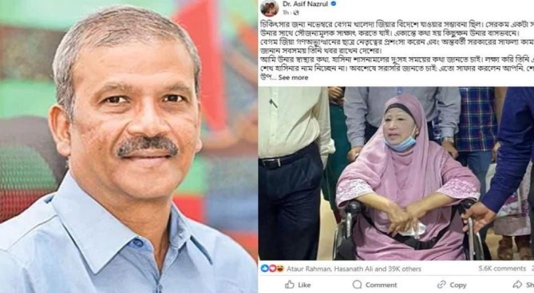 নিজেকে খালেদা জিয়ার ‘ভক্ত’ উল্লেখ করে পোস্টে আসিফ নজরুল জানান, শেখ হাসিনা সরকারের পুরো সময়েও বিএনপি চেয়ারপারসনের প্রতি তার শ্রদ্ধা ও সমর্থন অবিরত ছিল। পোস্টের সঙ্গে জুড়ে দেন একটি স্থিরচিত্র; যেখানে দেখা যাচ্ছে, খালেদা জিয়ার কফিনে মোড়ানো জাতীয় পতাকা তিনি বিএনপির ভারপ্রাপ্ত চেয়ারম্যান তারেক রহমানের হাতে তুলে দিচ্ছেন।