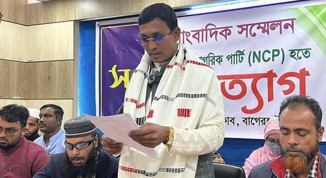 জাতীয় নাগরিক পার্টির (এনসিপি) বাগেরহাট সদর উপজেলা শাখার প্রধান সমন্বয়ক আলী হুসাইনসহ ১২ সদস্য পদত্যাগ করেছেন। রবিবার (১১ জানুয়ারি) দুপুরে বাগেরহাট প্রেস ক্লাবে এক সংবাদ সম্মেলনের মাধ্যমে এ পদত্যাগের ঘোষণা দেন নেতারা।